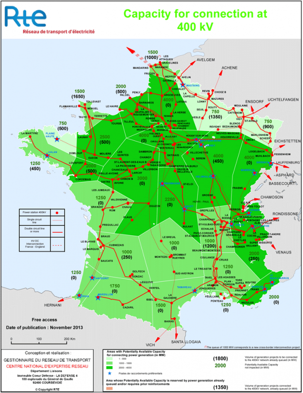 [43] : Au sujet de RTE : « RTE gère un réseau de transport de plus de 106 000 km de lignes à haute et très haute tension et emploie environ 10 000 salariés pour alimenter 500 clients industriels et desservir 2 500 postes-sources à l’interface avec les réseaux de distribution. Il est également responsable du raccordement des nouvelles unités de production d’énergie renouvelable les plus puissantes (champs d’éoliennes offshore, éoliennes terrestres, fermes photovoltaïques), ainsi que des interconnexions avec les pays voisins. RTE investit fortement dans le développement du réseau, mais aussi dans le numérique pour optimiser l’utilisation et l’efficacité du réseau. » (p.205-206). Pour apprendre l’exploitation, la maintenance et l’ingénierie des ouvrages électriques haute et très haute tension, la filiale d’RTE Cirtéus proposent des formations dans le centre de formation RTE de Jonage.