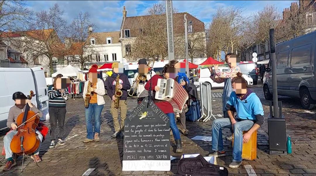 Une team de musicien.nes est présente pour un mois à la frontière franco-britannique et propose des temps de partage joyeux sur les lieux de vie, les lieux de lutte et d’accueil. Le son de l’accordéon s’est même fait entendre aux vœux de la maire de Calais qui n’a pas apprécié la dénonciation de la politique locale envers les personnes exilées.