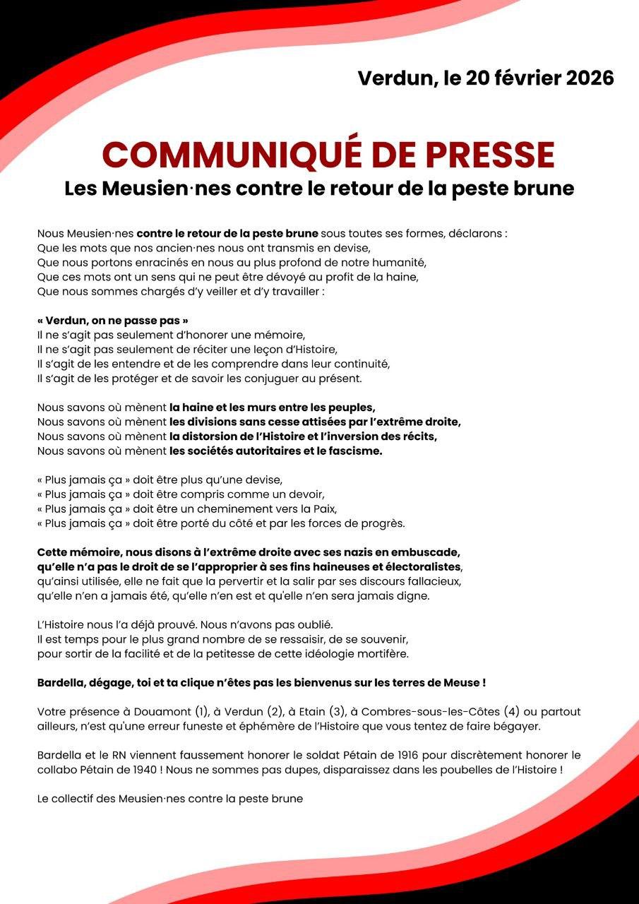 (2) Il ira ensuite à 17h en centre ville de Verdun, rue de rû Au Lieu qui a accepté de recevoir l’extrềme droite, nous n’oublierons pas.