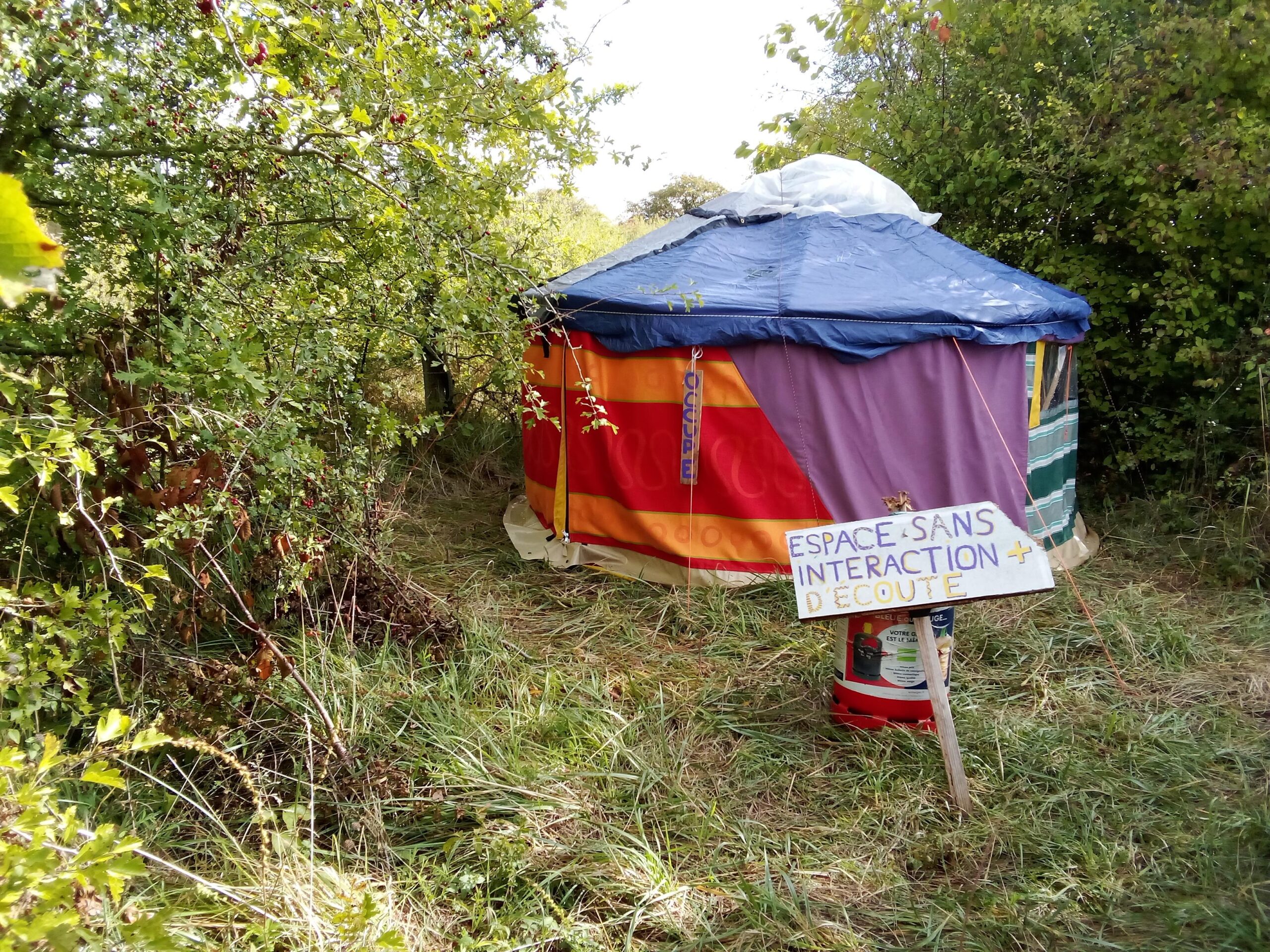 Différents espaces ont pris places, le coin chill, les crépitantes qui régalent le camp, l’espace soin, l’espace accueil, la tente medic, etc.